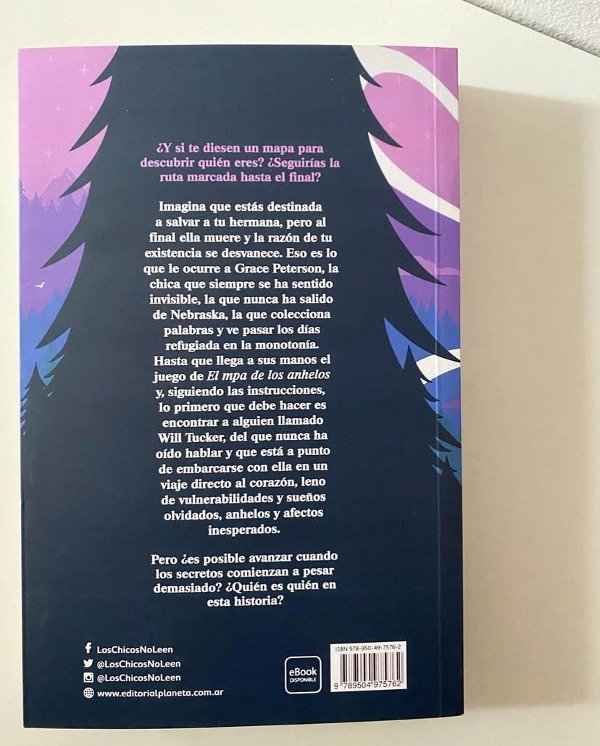 Imagina que estás destinada a salvar a tu hermana; pero al final ella muere y la razón de tu existencia se desvanece. Eso es lo que le ocurre a Grace Peterson; la chica que siempre se ha sentido invisible; la que nunca ha salido de Nebraska; la que colecciona palabras y ve pasar los días refugiada en la monotonía. Hasta que llega a sus manos el juego de El mapa de los anhelos y; siguiendo las instrucciones; lo primero que debe hacer es encontrar a alguien llamado Will Tucker; del que nunca ha oído hablar y que está a punto de embarcarse con ella en un viaje directo al corazón; lleno de vulnerabilidades y sueños olvidados; anhelos y afectos inesperados. Pero ¿es posible avanzar cuando los secretos comienzan a pesar demasiado? ¿Quién es quién en esta historia?