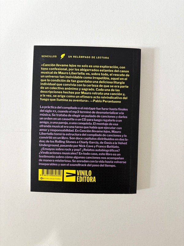 El montaje de esa ofrenda musical era una tarea que había que ejecutar con amor y responsabilidad. En Canción llevame lejos, Mauro Libertella tomó la estructura del compilado de canciones y lo convirtió en un libro. Son doce capítulos distribuidos en dos lados; de los Rolling Stones a Charly García, de Oasis a la Velvet Underground, pasando por Nick Cave y Franco Battiato.