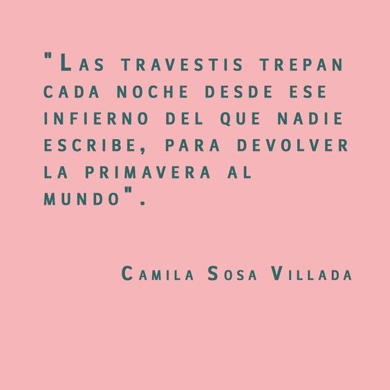 'La Villada grita verdad en una prosa verídicamente trava y desde ahí exige a toda persona ajena a nuestra comunidad una hermenéutica nueva. ¿Es verdad lo novelado hasta la exacerbación; es verdad toda esta fantasmática? ¡Sí! Porque ahí nos pinta Camila en todas nuestras densidades; y ahí los expone a ustedes en sus mentiras y acciones ominosas con nosotras'. MARLENE WAYAR