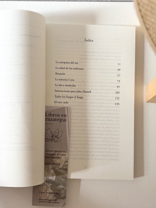 «En todo caso bastaba ingresar en la deriva placentera del ciudadano que se deja llevar por sus preferencias callejeras, y casi siempre mi paseo terminaba en el barrio de las galerías cubiertas, quizás porque los pasajes y las galerías han sido mi patria secreta desde siempre.» Todos los fuegos el fuego (1966) ofrece ocho muestras rotundas de la plenitud creadora que alcanzan los cuentos de Cortázar. Desde la exasperada metáfora de las relaciones humanas que es "La autopista del sur" hasta la maestría de "El otro cielo", Cortázar vuelve a abrir nuevos caminos con relatos que son referencia obligada para sus lectores y para los amantes del cuento en general. "La salud de los enfermos", "Reunión", "La señorita Cora", "La isla a mediodía", "Instrucciones para John Howell", "Todos los fuegos el fuego": una fiesta de la inteligencia, de la pasión y del genio.